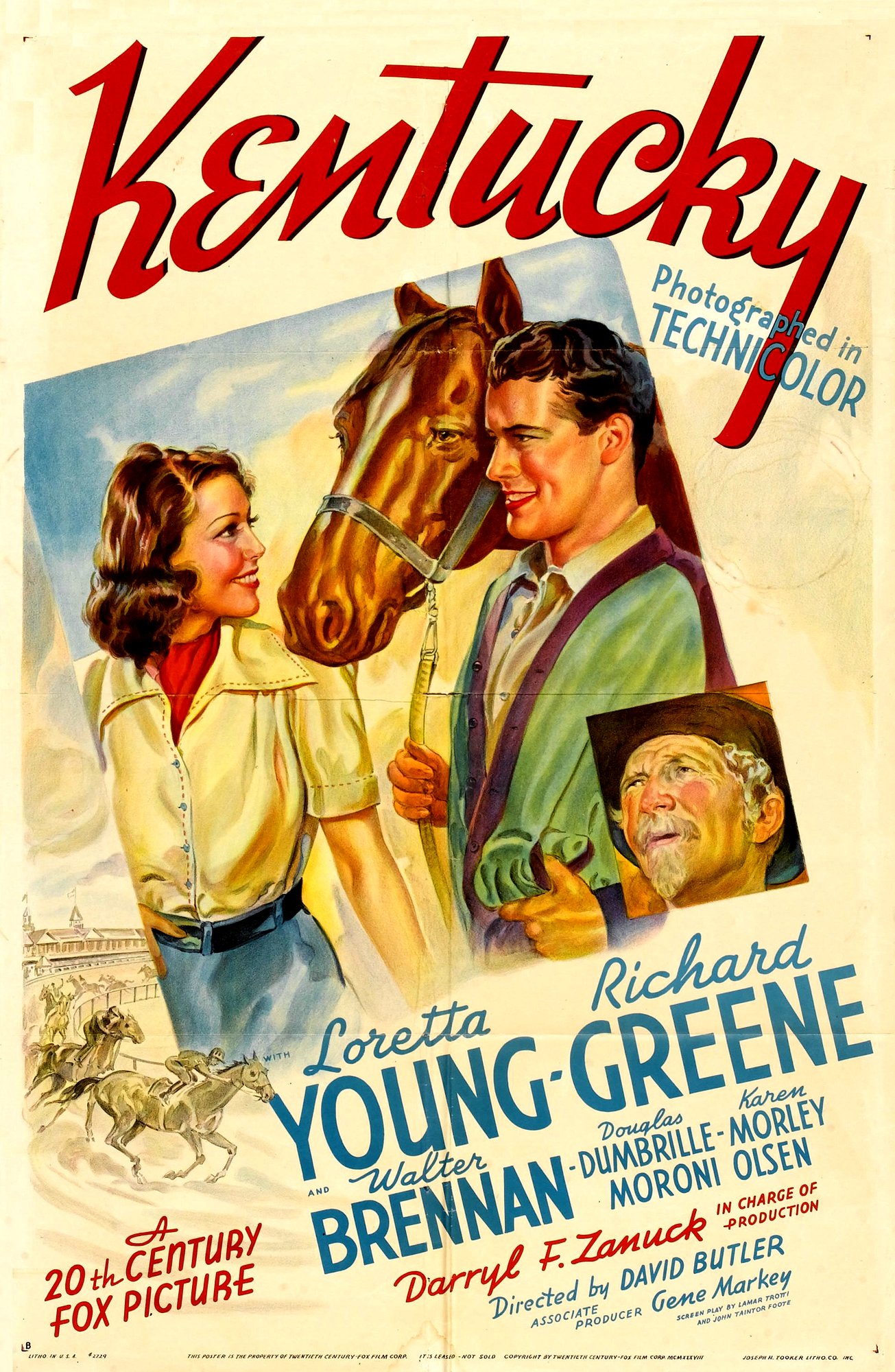 | Description | Kentucky is a 1938 Technicolor film with Loretta Young, Richard Greene, and Walter Brennan. It was directed by David Butler. It is a Romeo and Juliet story of lovers Jack and Sally, set amidst Kentucky horseracing, in which a family feud goes back to the Civil War and is kept alive by Sally's Uncle Peter.
