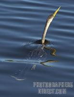 Anhinga Swimming in clear blue water with reflection , Everglades National Park stock photo