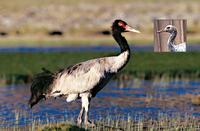 Image of: Grus grus (common crane), Grus nigricollis (black-necked crane)
