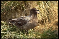 ...FT0165-00: Antarctic Skua, Catharacta antarctica, on tussock grass in a king penguin colony. Sub