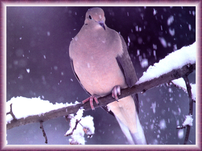 Mourning Dove (Zenaida macroura) is a member of the dove family Columbidae. The bird is also called the American Mourning Dove, and formerly was known as the Carolina Pigeon or Carolina Turtledove. It ranges from Central America to southern Canada, including offshore islands. Many individuals in northern areas migrate south to spend winter within the breeding range where January temperatures are above ???12° Celsius (10° F). | |