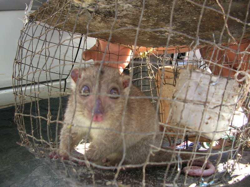 i came across this animal while in East timor. It looks kind of like a cross between a possum (note the pink tail), a civet (which are common in the area), and a loris.. but i can't seem to find this animal anywhere..