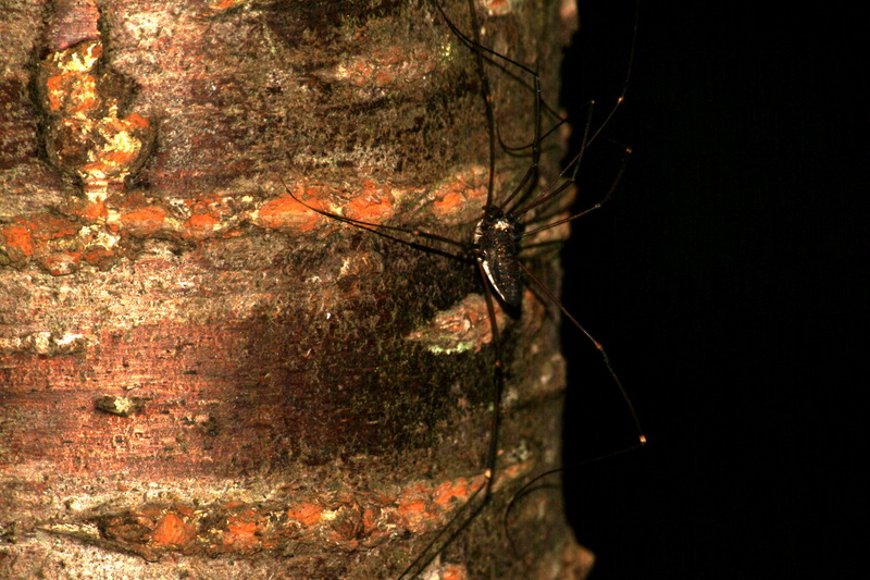 어두운 나무 그늘에 붙어 숨어 있던 장님거미. 영어로는 긴다리아빠(daddy longlegs).