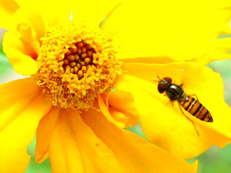 꽃등에 한마리 -- 호리꽃등에 Episyrphus balteatus (Marmelade hoverfly); DISPLAY FULL IMAGE.