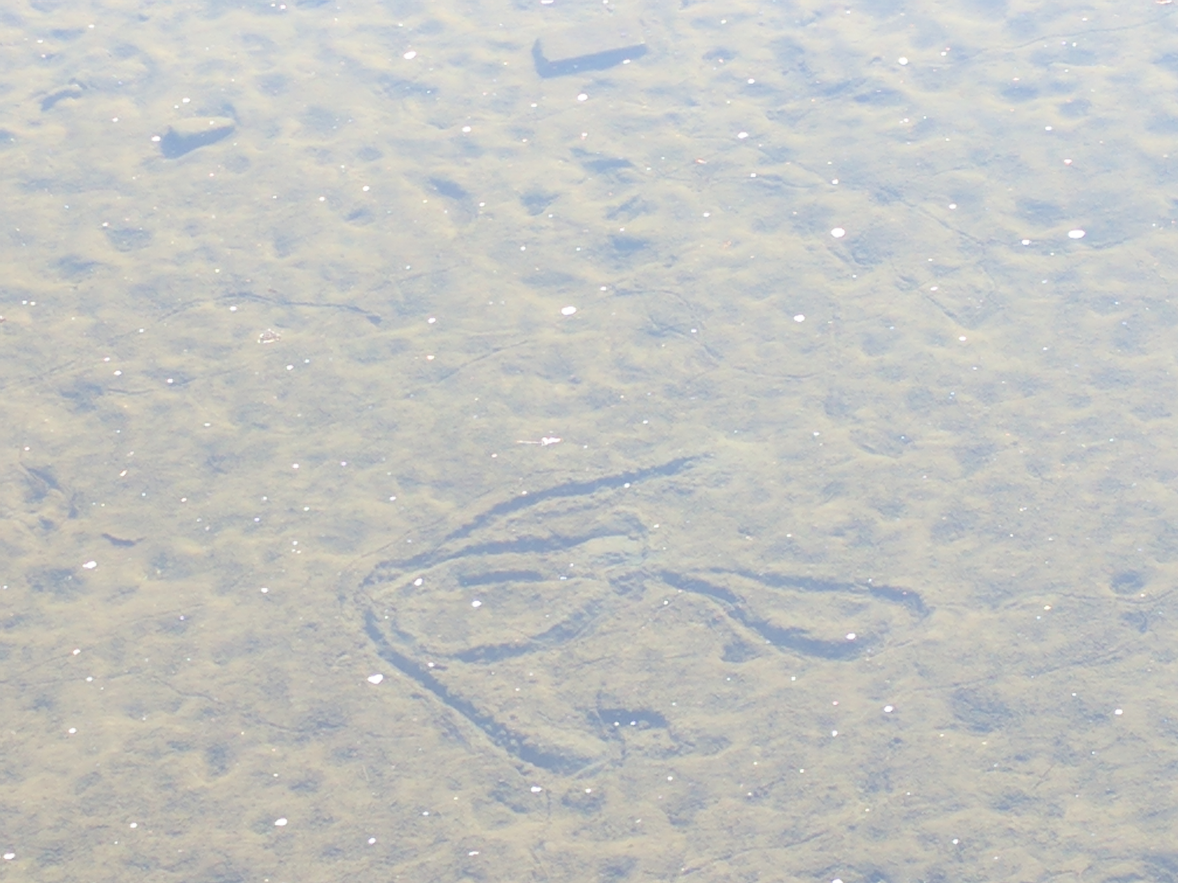 갑천 바닥에서 펄조개가 그린. 조개는 바닥속으로 숨었는 지 보이지 않는다.
