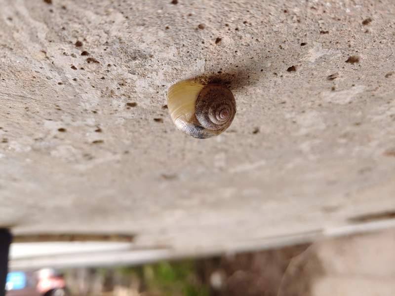 다리 아래 담벼락에 붙어서 낮을 보내는 명주달팽이.