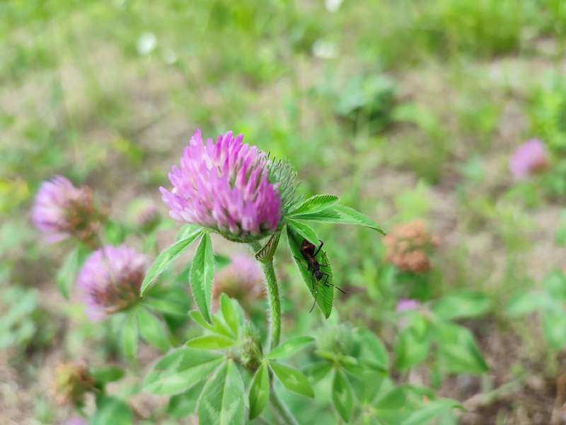 | 사진 제목 | 붉은토끼풀과 톱다리개미허리노린재 (Riptortus clavatus) 약충 | |