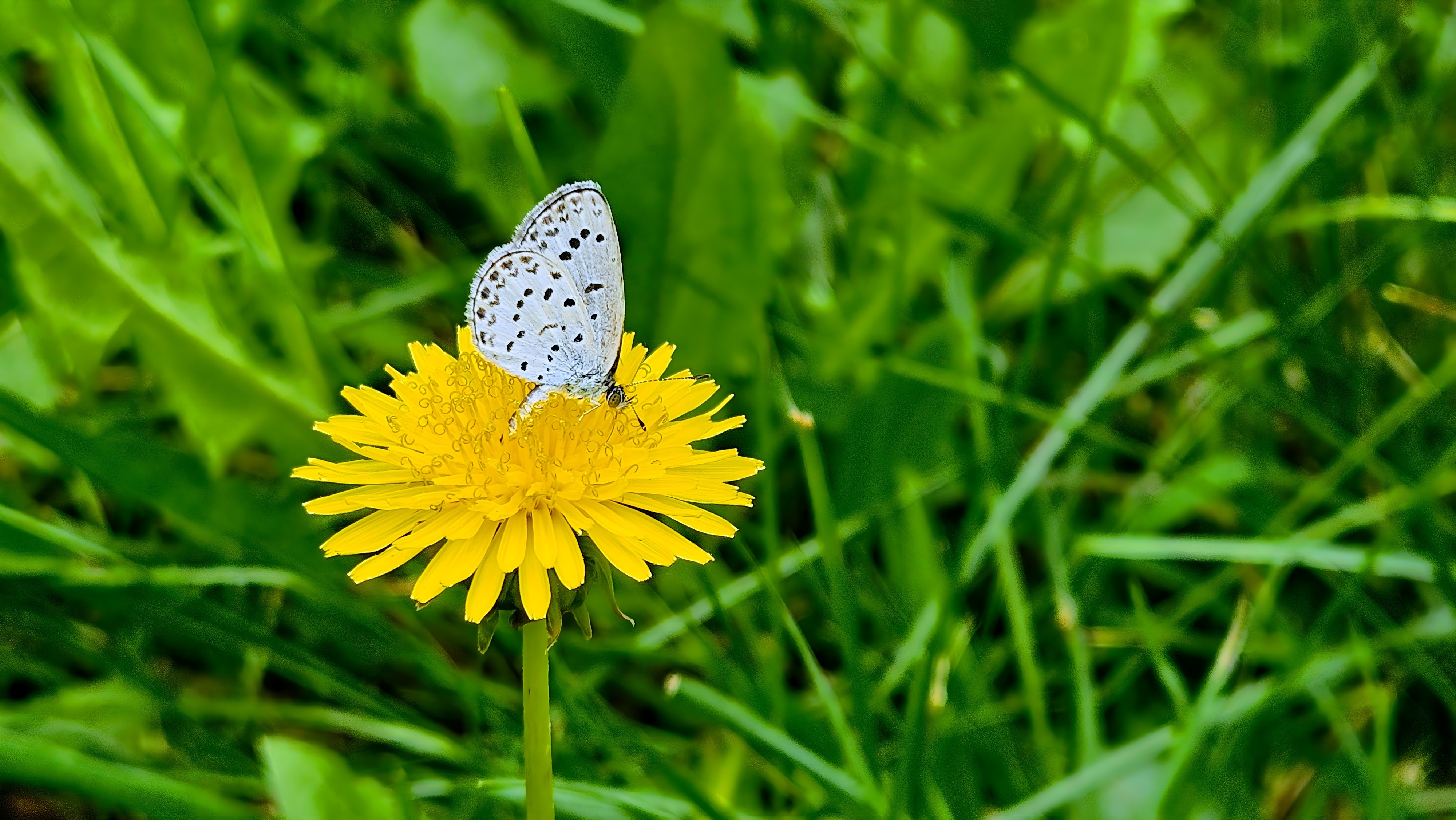 남방부전나비가 서양민들레 꽃에 앉았습니다.