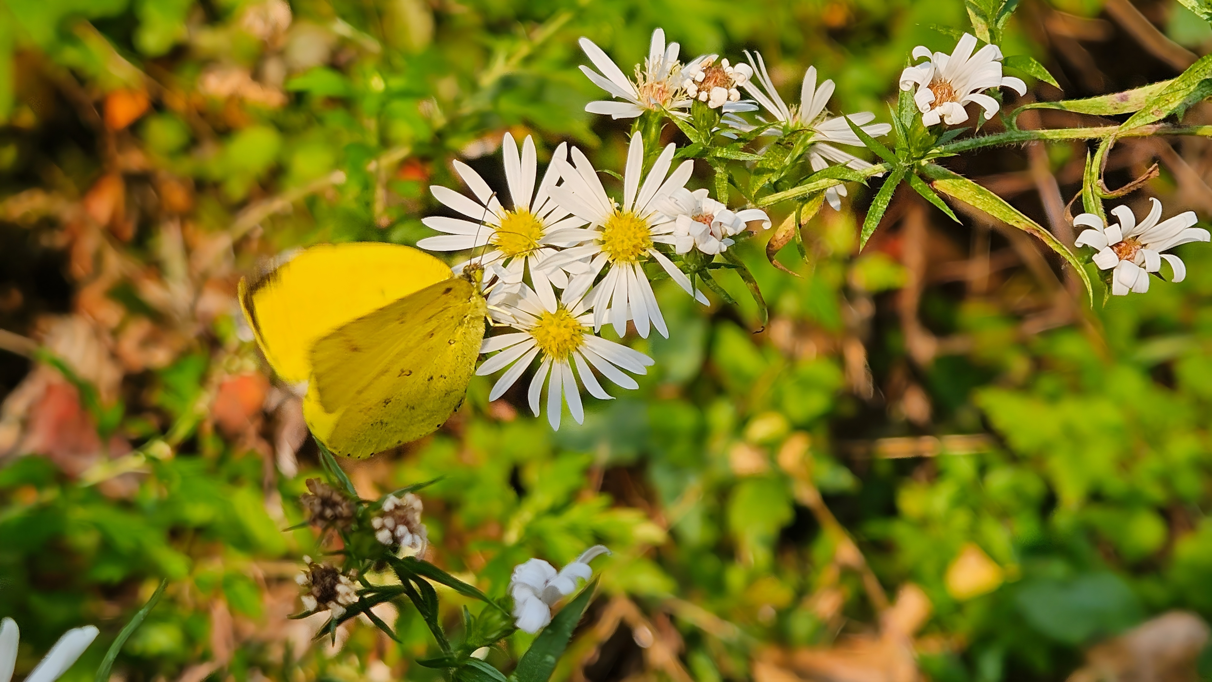 미국쑥부쟁이 꽃의 남방노랑나비 (Eurema hecabe)