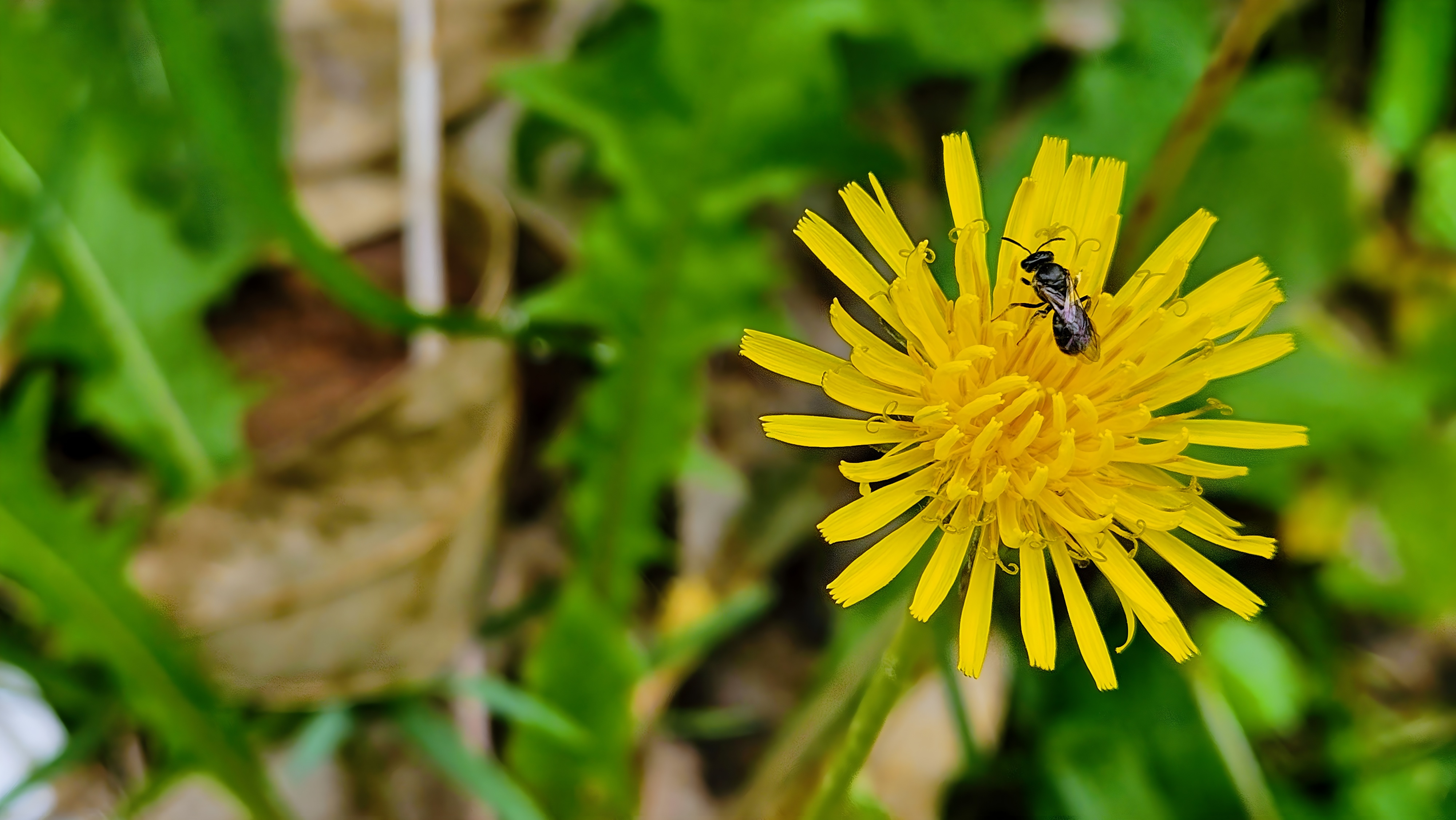 Subject 서양민들레 꽃과 꼬마꽃벌. 줄꼬마꽃벌 (Lasioglossum subopacum) 추정