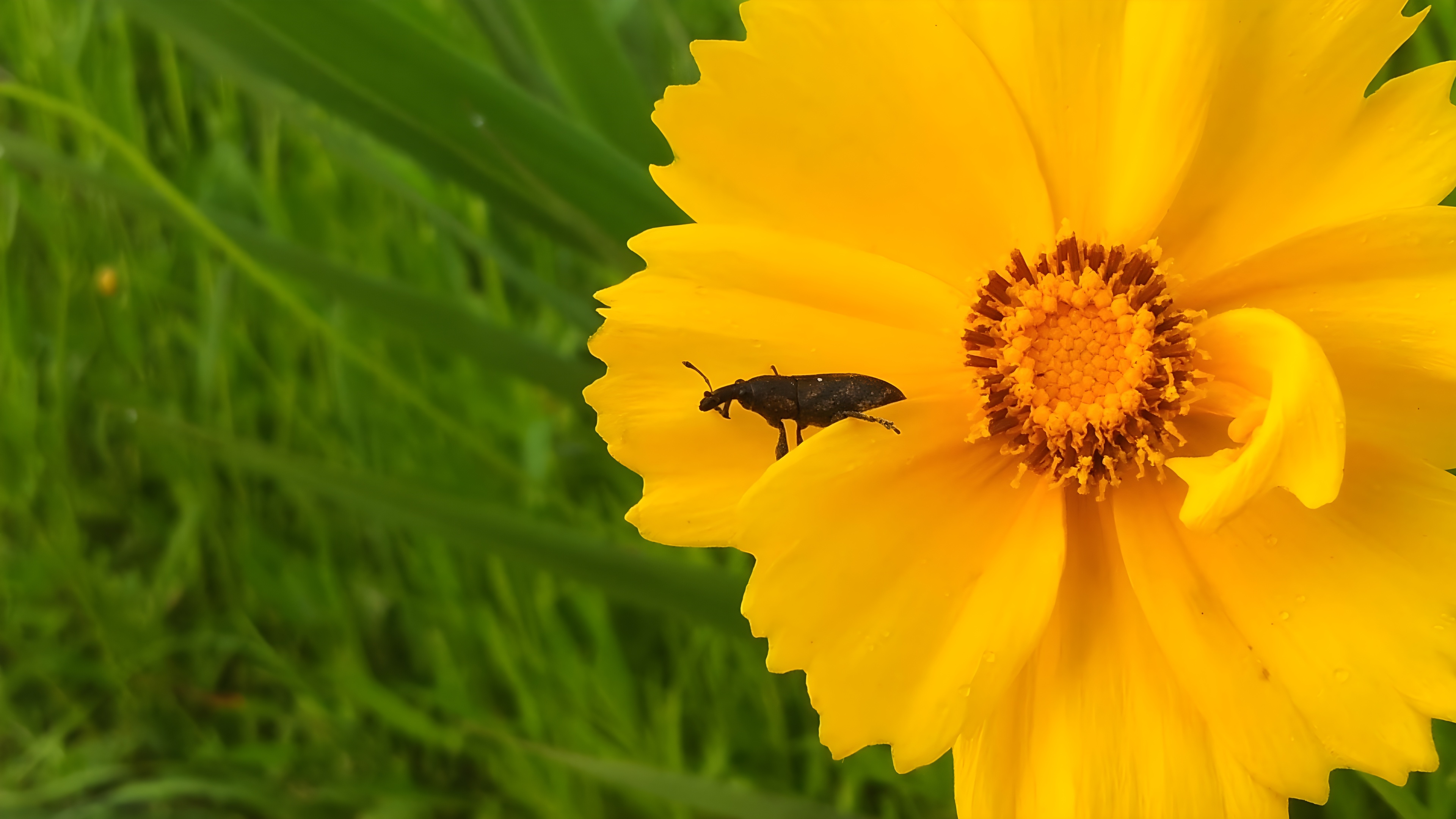 Subject [옛사진] 큰금계국의 흰띠길쭉바구미 (Lixus acutipennis) (추정) (부분확대)