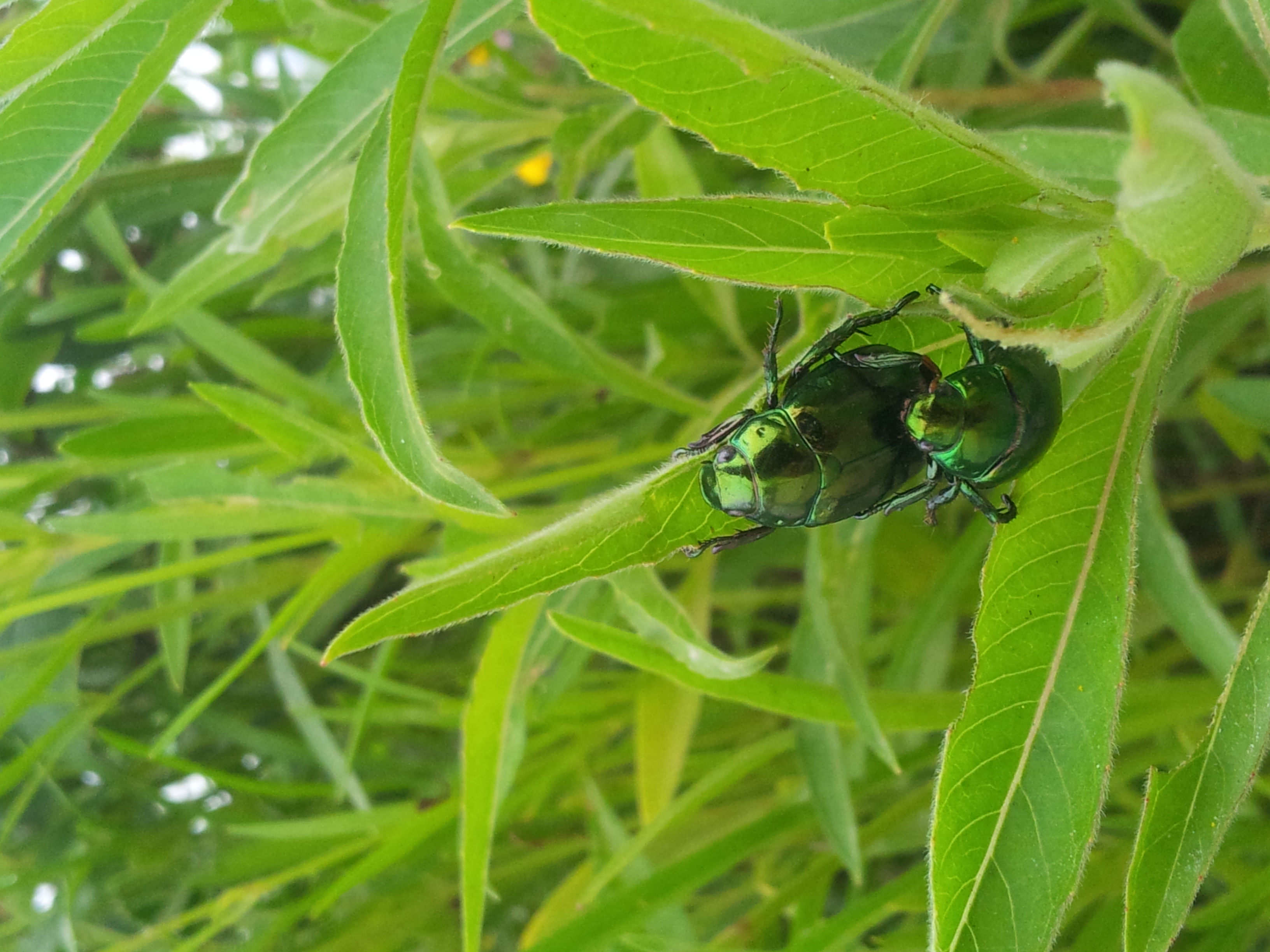풍뎅이 한쌍이 풀잎에 숨어 사랑을 나누고 있습니다.
