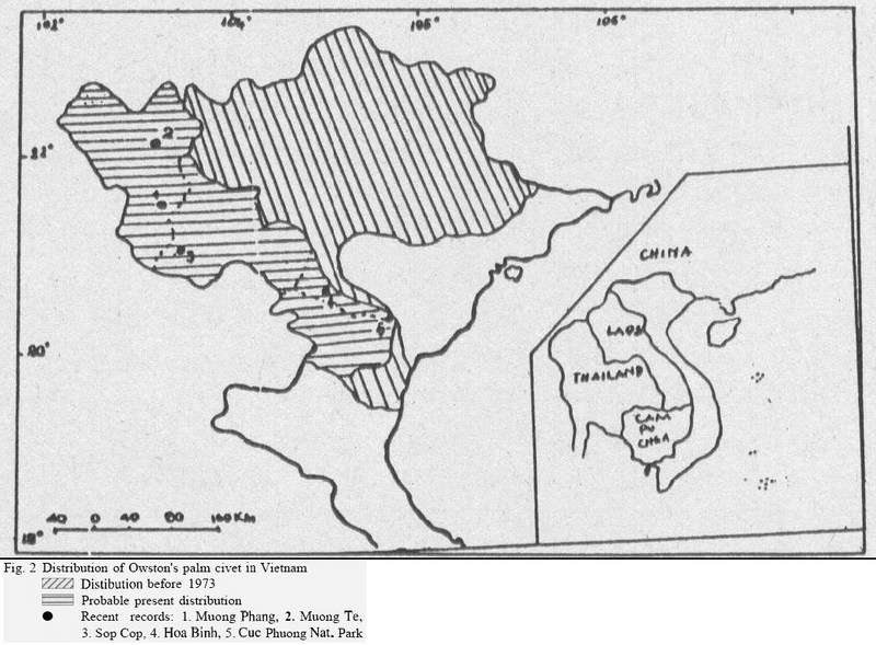 | Image Info | Original File Name: Distribution of Owston\'s palm civet in Vietnam.jpg Resolution: 1045x769 File Size: 236570 Bytes Date: 2006:04:26 10:53:07 Upload Time: 2006:04:26 10:57:53 | |