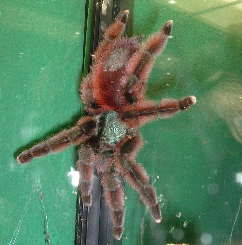 | 이미지 정보 | Original File Name: Antilles Pinktoe Tarantula (Avicularia versicolor).jpg Resolution: 1379x1400 File Size: 429632 Bytes Date: 2004:01:16 12:24:10 Camera: FinePix A310 (FUJIFILM) F number: f/7.0 Exposure: 10/600 sec Focal Length: 570/100 Upload Time: 2006:12:11 09:46:35 | |