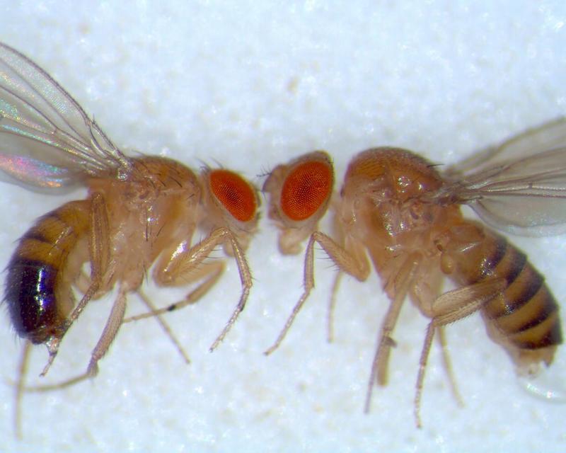 A normal male against a mutant female, with reduced bristles (ss gene) and rough eye texture (ro gene). Agrawal et. al. University of Toronto | |