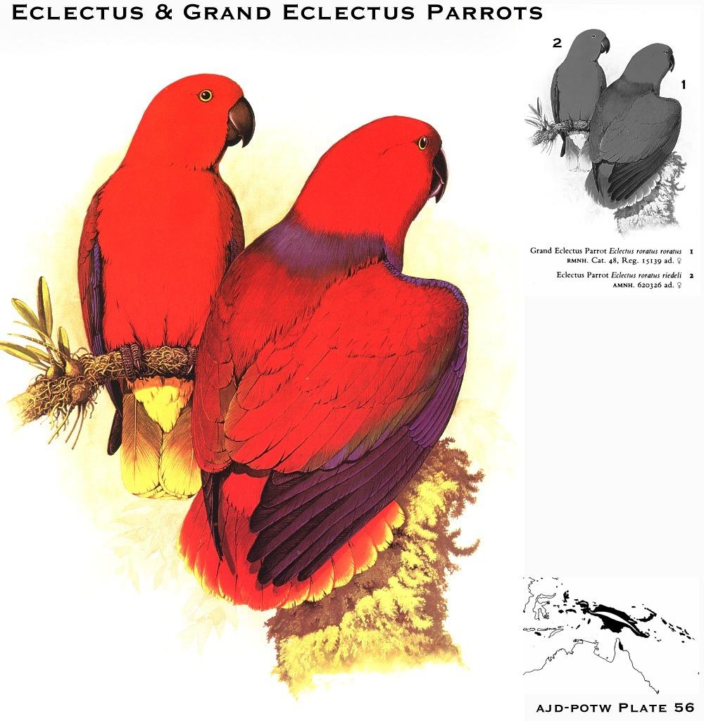 Eclectus Parrot (Eclectus roratus roratus) and Grand Eclectus Parrot (Eclectus roratus riedeli)