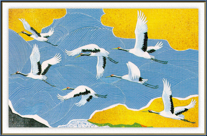 | Description | Japanese Greeting Card: Red-crowned cranes in flight