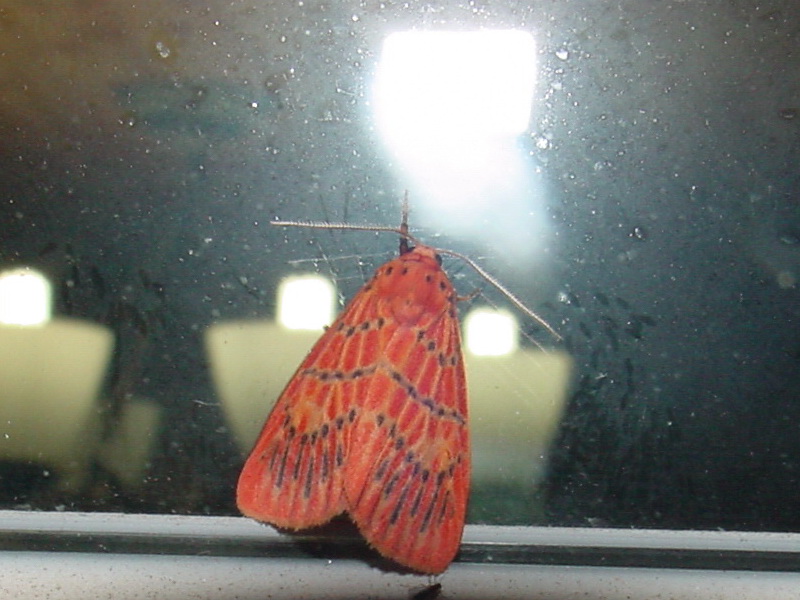 Seems to be a Miltochrista pulchera of which Korean name is 알락주홍불나방.