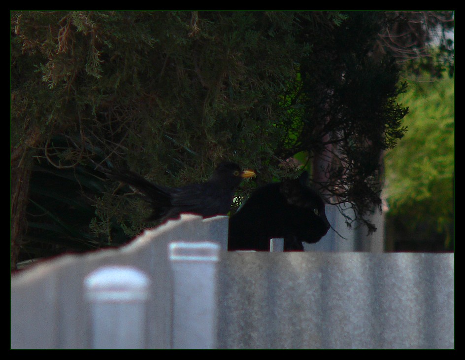 The neighbours cat ( named Black Betty :-) ) was sitting on the fence,