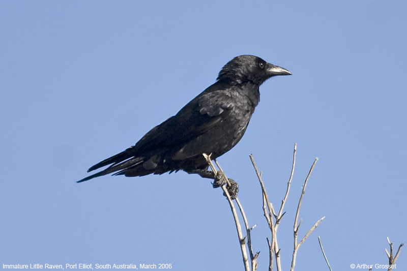 [Photo] Little Raven Corvus mellori, Port Elliot, South Australia. Date: March 2006. Photo Copyright (C) Arthur Grosset (www.arthurgrosset.com). Source: http://www.arthurgrosset.com/ozbirds/littleraven.html