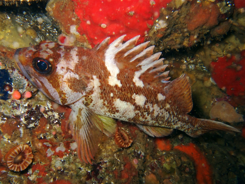 [Photo] Copper rockfish (Sebastes caurinus), Point Lobos State Reserve, California. Source: Flickr (www.flickr.com/photos/lemurdillo/1369600109/). Date: Taken on September 11, 2007. Author: lemurdillo (www.flickr.com/photos/lemurdillo/).