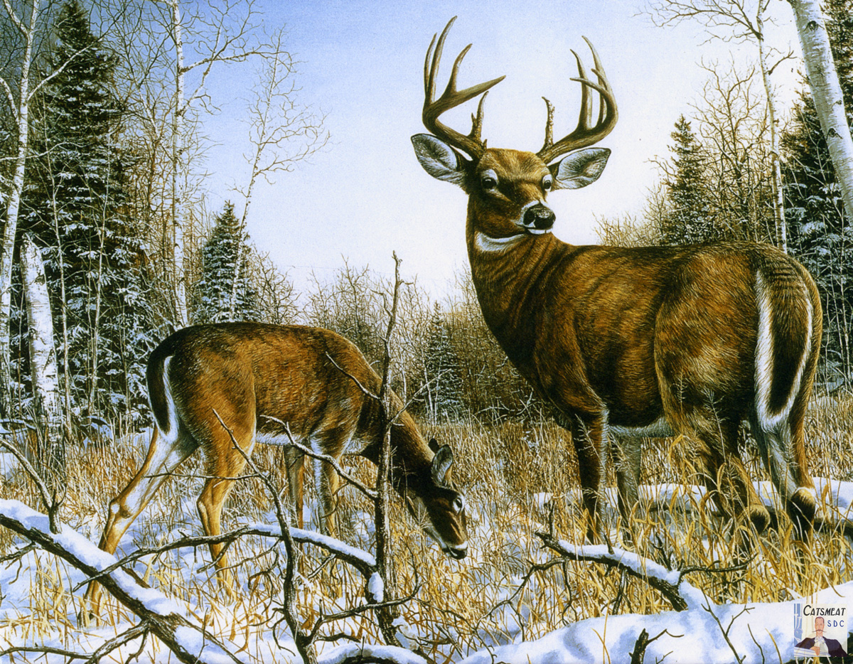 Subject Catsmeat SDC 2003 - Weyer Wildlife Calendar 12: White-tailed Deer - acrylic painting by Jim Hansel