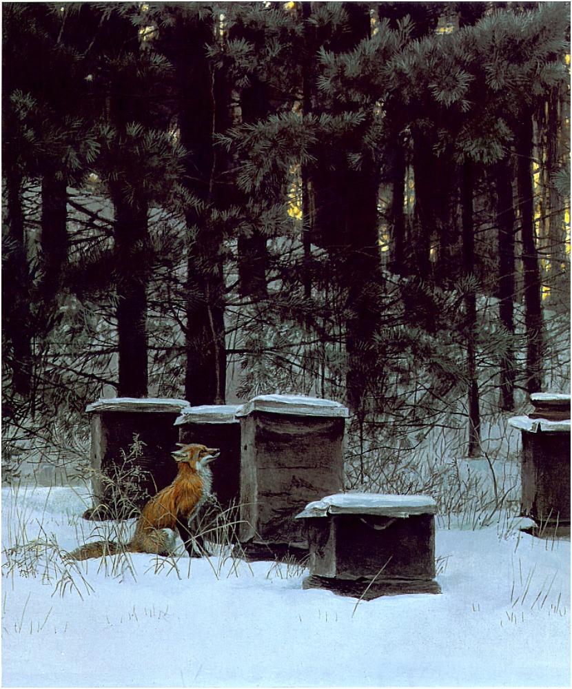 Subject [Animal Art] Red Fox and Beehives, by Robert Bateman
