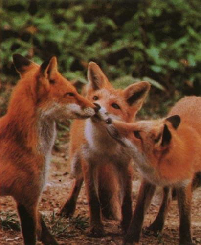Red Foxes (Vulpes vulpes){!--붉은여우--> three pups From: LazyFox