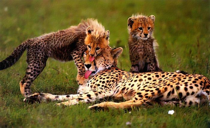 Cheetah (Acinonyx jubatus){!--치타--> mother and cubs From: Charles Perrien
