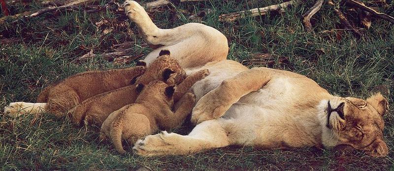 African lion (Panthera leo) {!--아프리카사자--> mother and cub latin dict size=42   common dict size=512