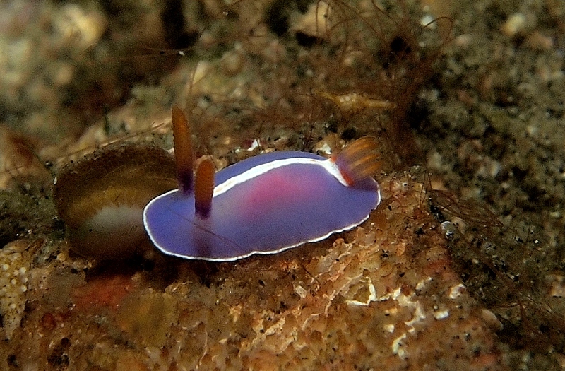 Verconia purpurea is a species of colourful sea slug, a dorid nudibranch, a shell-less marine gastropod mollusk in the family Chromodorididae. This marine species occurs off subtropical Japan. The length of the body attains 20 mm. Order: Nudibranchia, Superfamily: Doridoidea, Family: Chromodorididae, Genus: Verconia, Species: Verconia purpurea Baba, 1949.