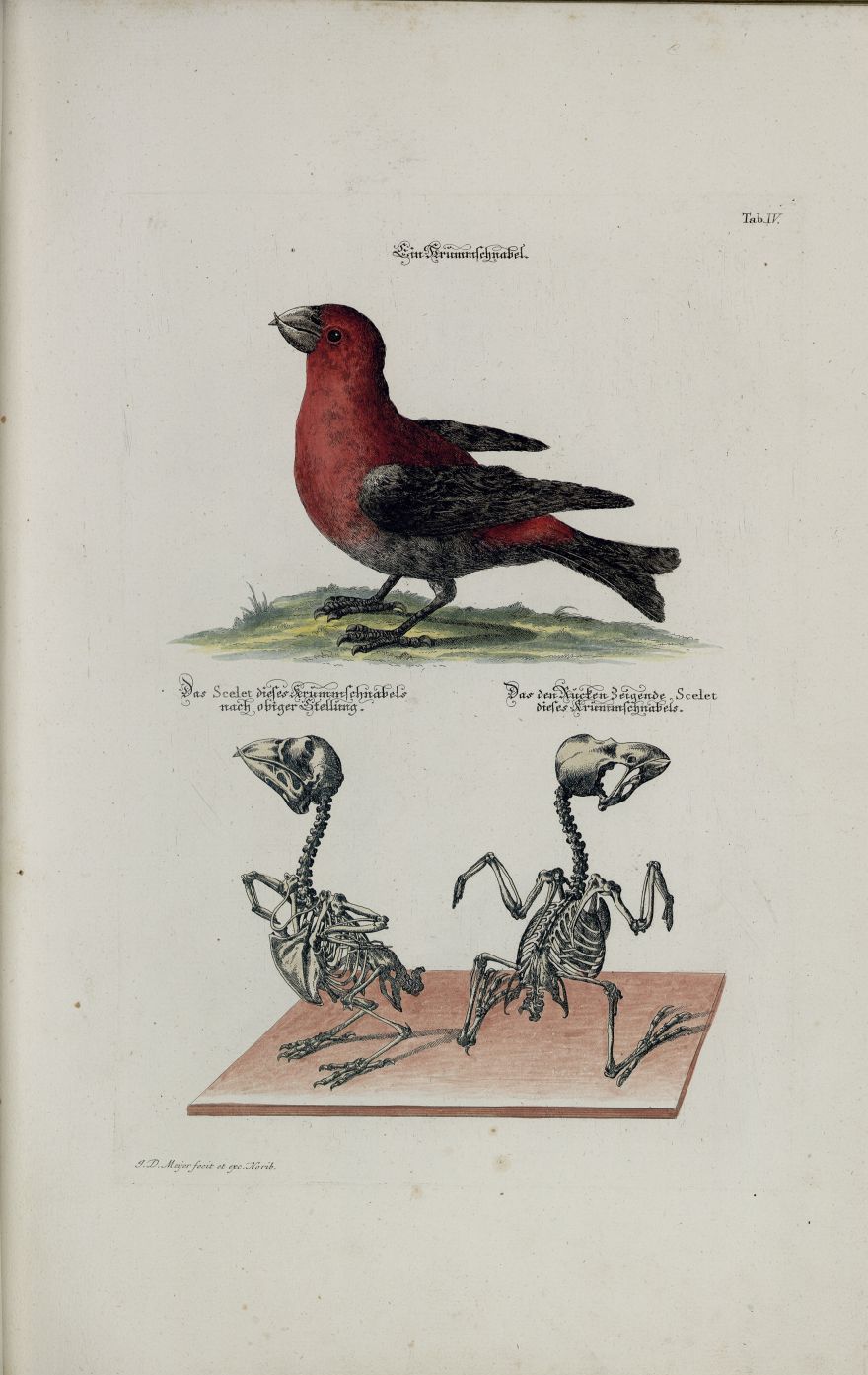 Angenehmer und nützlicher Zeit-Vertreib mit Betrachtung curioser Vorstellungen allerhand kriechender, fliegender und schwimmender, auf dem Land und im Wasser sich befindender und nährender Thiere, sowohl nach ihrer Gestalt und äusserlichen Beschaffenheit, als auch nach der accuratest davon verfertigten Structur ihrer Scelete oder Bein-Cörper, nebst einer deutlichen so physicalisch und anatomisch besonders aber osteologisch und mechanischen Beschreibung derselben / nach der Natur gezeichnet, gemahlet, in Kupfer gestochen und verlegt von Johann Daniel Meyer, Miniatur-Mahler in Nürnberg; Band 1; Nürnberg 1748