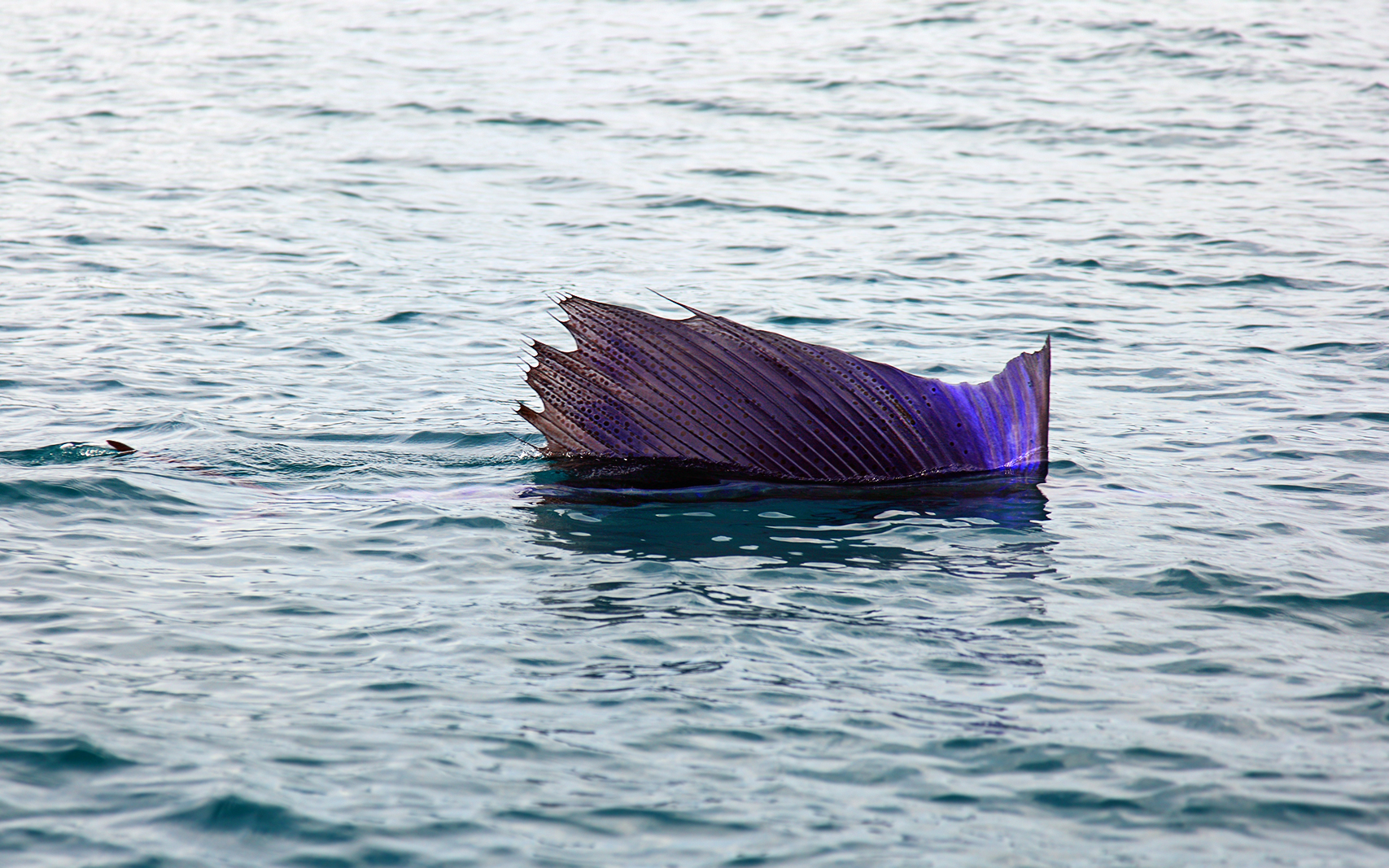 Istiophorus platypterus exhibiting sail-rasing behaviour in the mouth of Golfo Dulce, Costa Rica