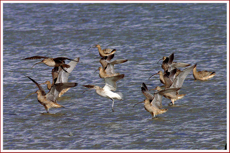 The Far Eastern Curlew or Eastern Curlew (Numenius madagascariensis) is a large shorebird most similar in appearance to the Long-billed Curlew, but slightly larger. It is mostly brown in color, differentiated from other curlews by its plain, unpatterned brown underwing. It has the longest bill of any shorebird.