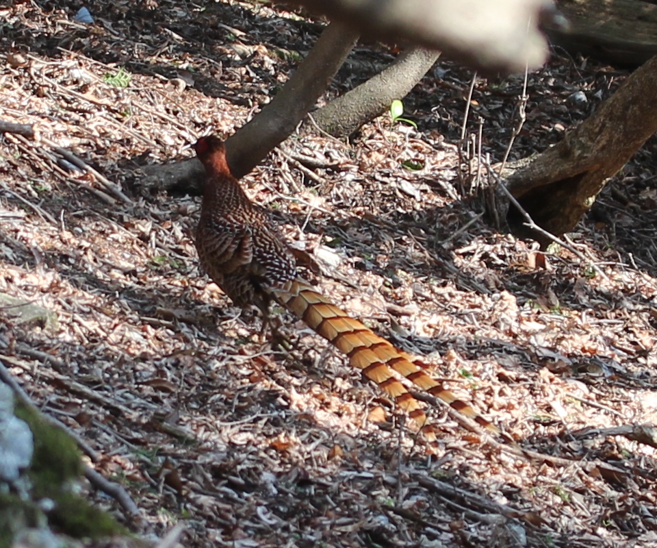 copper pheasant (Syrmaticus soemmerringii) 日本語: ウスアカヤマドリ(薄赤山鳥、学名:Syrmaticus soemmerringii subrufus (Kuroda, 1919) )のオス、藤原岳三重県いなべ市)にて