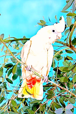 The Philippine cockatoo is such a beautiful parrot, with perfect creamy white plumage, it is of little wonder that it is threatened by collection for the pet trade. It has contrasting orangey-red feathers on the underside of the tail, blending into a deep yellow, and its crest feathers and cheeks are tinged with varying amounts of pale yellow and rose pink. The bill is greyish-white, and males have dark brown irises, while those of the female are brownish-red. | |
