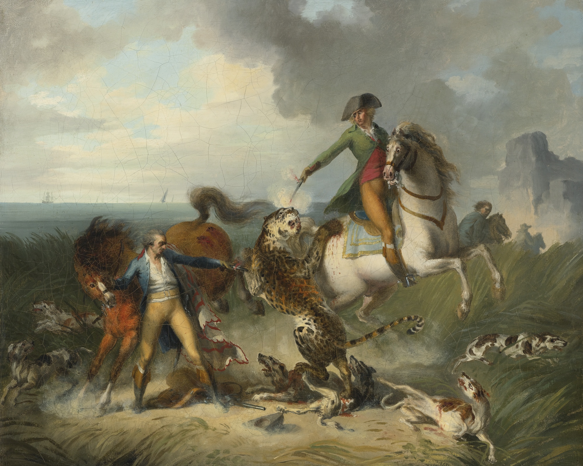 Source: https://commons.wikimedia.org/wiki/File:The_Prince_of_Nassau_and_the_Chevalier_d%27Oraison_fighting_a_jaguar.jpg