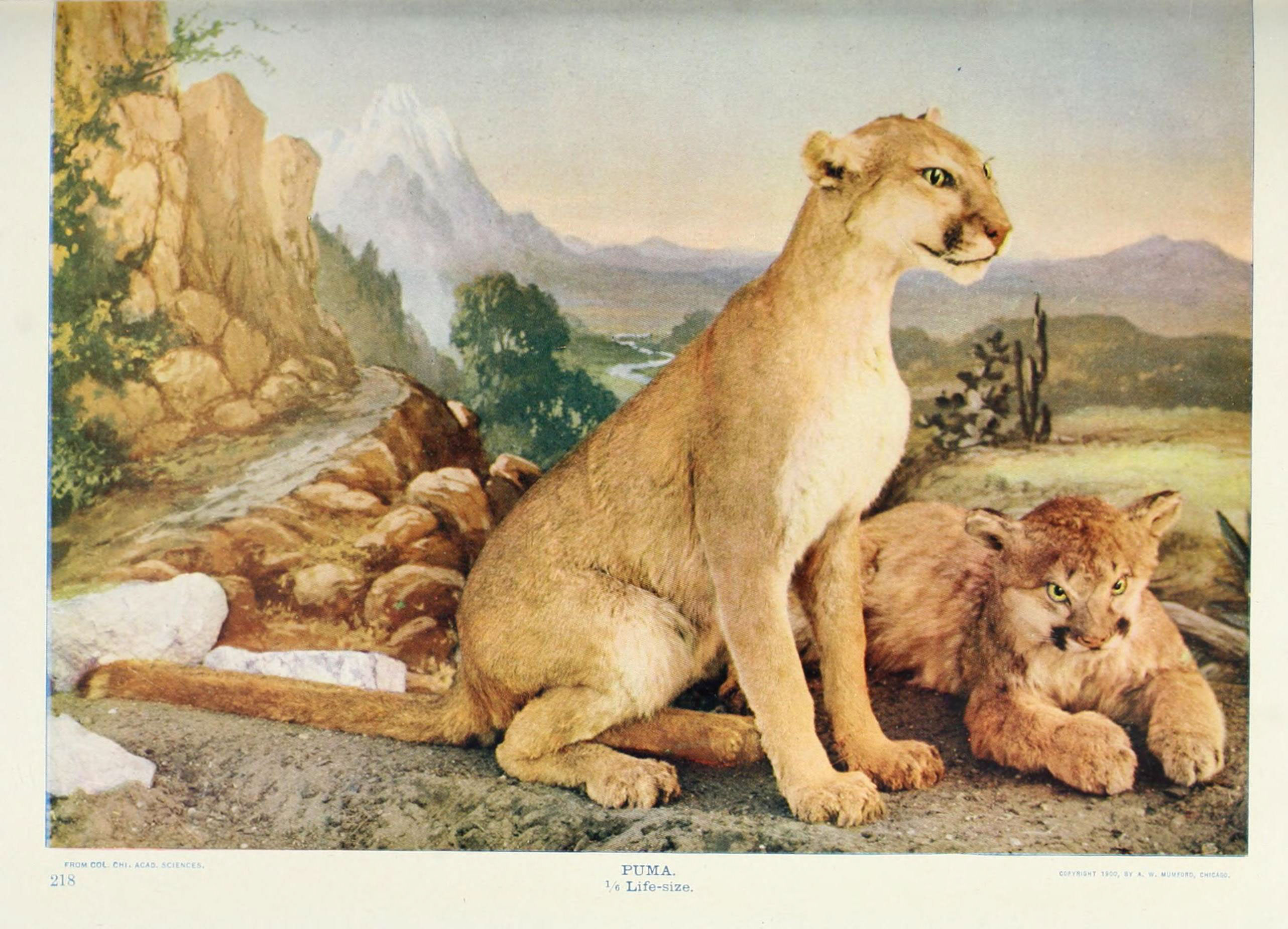 The cougar (Puma concolor), also commonly known as the mountain lion, puma, panther, or catamount, is a large felid of the subfamily Felinae native to the Americas. It is found from the Canadian Yukon to the southern Andes of South America.