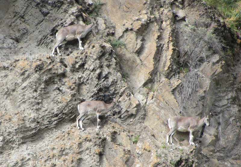English: Three en:Bharals climbing at the Potala Rock in Lhasa, Tibet