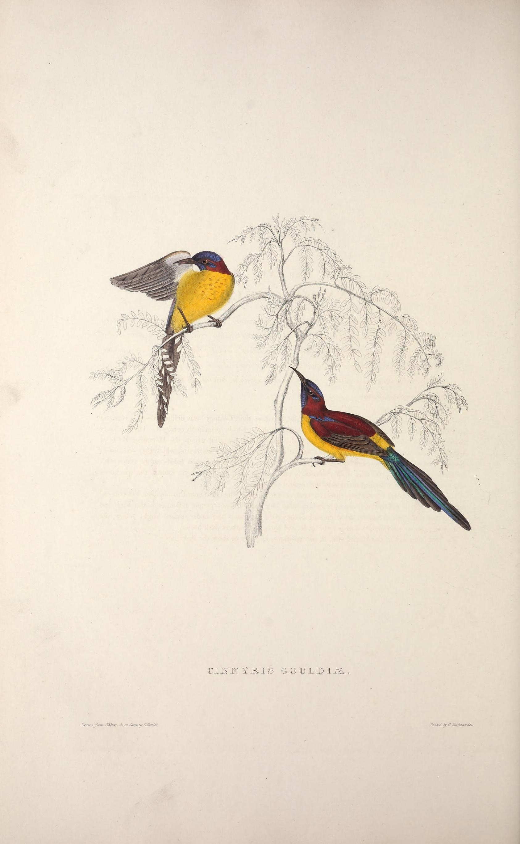 The Gould's sunbird or Mrs. Gould's sunbird (Aethopyga gouldiae) is a species of bird in the Nectariniidae family. It is found in Bangladesh, Bhutan, China, Hong Kong, India, Laos, Myanmar, Nepal, Thailand, and Vietnam.