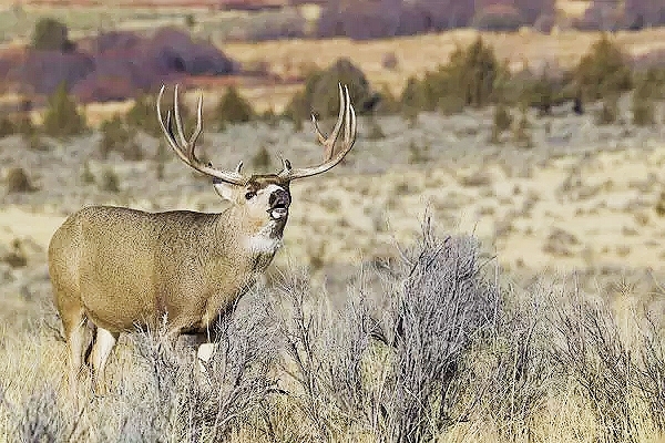 Mule deer (Odocoileus hemionus) Mule deer are one of the most iconic and beloved wildlife in the American West. They are so-named because of their large ears that look like a mule's ears. During summer, these deer are a tannish-brown colour and in winter they are brownish-grey. There is a white patch on their rump and they have a small white tail tipped with black. The fawns have a spotted coat. The bucks (males), have forked antlers, which are shed in mid-February. Their next set of antlers then starts to grow immediately. Antlers have a covering of velvety skin until they are fully formed, at which point the buck scrapes off this layer. Females (does) do not have antlers.