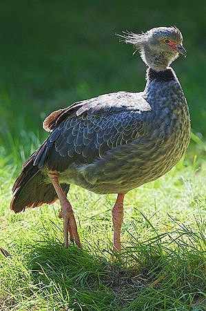 The southern screamer haunts marshy areas of the pampas with harsh cries. Its slightly webbed feet enable it to walk on floating vegetation. | |