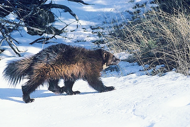 Some people refer to the shaggy-haired, robust wolverine - a member of the weasel family - as 'the glutton', since it will devour almost any kind of edible substance. During summer, the wolverine eats plants, carrion left behind by other carnivores, birds and small mammals such as mice and rats. In winter, however, the reduction in vegetation, coupled with the relative scarcity of small mammals, forces it to attack much larger prey, such as reindeer. The wolverine sinks its powerful claws into the reindeer's back, holding on until its prey stumbles to the ground in exhaustion. | |