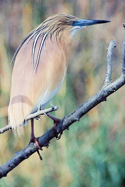 The squacco heron is a solitary bird outside the breeding season. It is fond of perching in trees and often uses branches or the stems of aquatic plants as look-out posts when feeding. | |