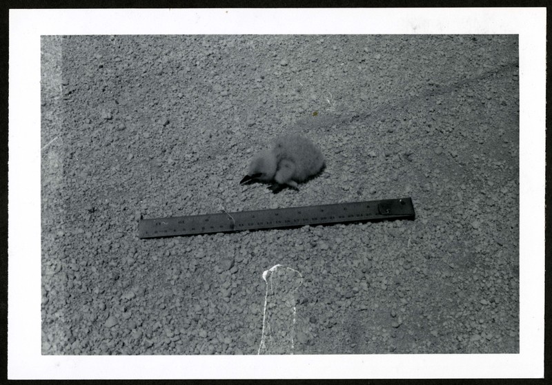 Common Noddy chick on Kure Atoll (c. 1960's) was photographed as part of field work completed during the Pacific Ocean Biological Survey Program.