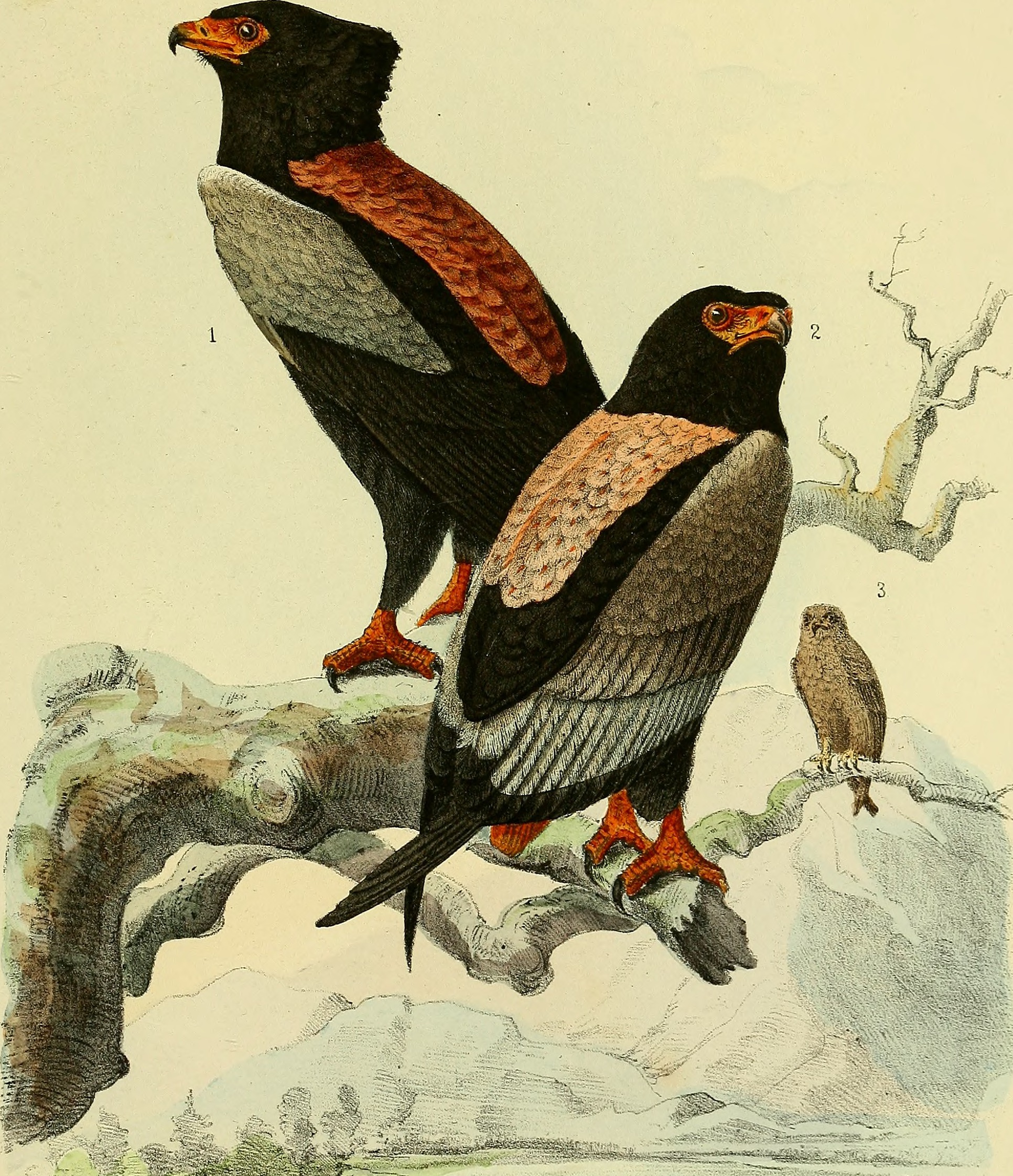 Helotarsus ecaudatus. 1., Mas .ad. 2., dto. var.(Jun?) 3., Juv.