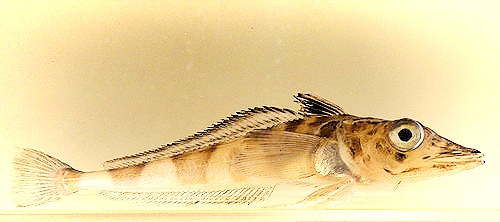 The spiny icefish is a pale grey fish with dark crossbars, a spine on its snout and well-developed spines on its operculum. It reaches a maximum length of 43 cm and has an elongated, oval body shape. This species is known for its unique physiology, being one of the few vertebrates to lack hemoglobin, resulting in a white, translucent appearance. | |