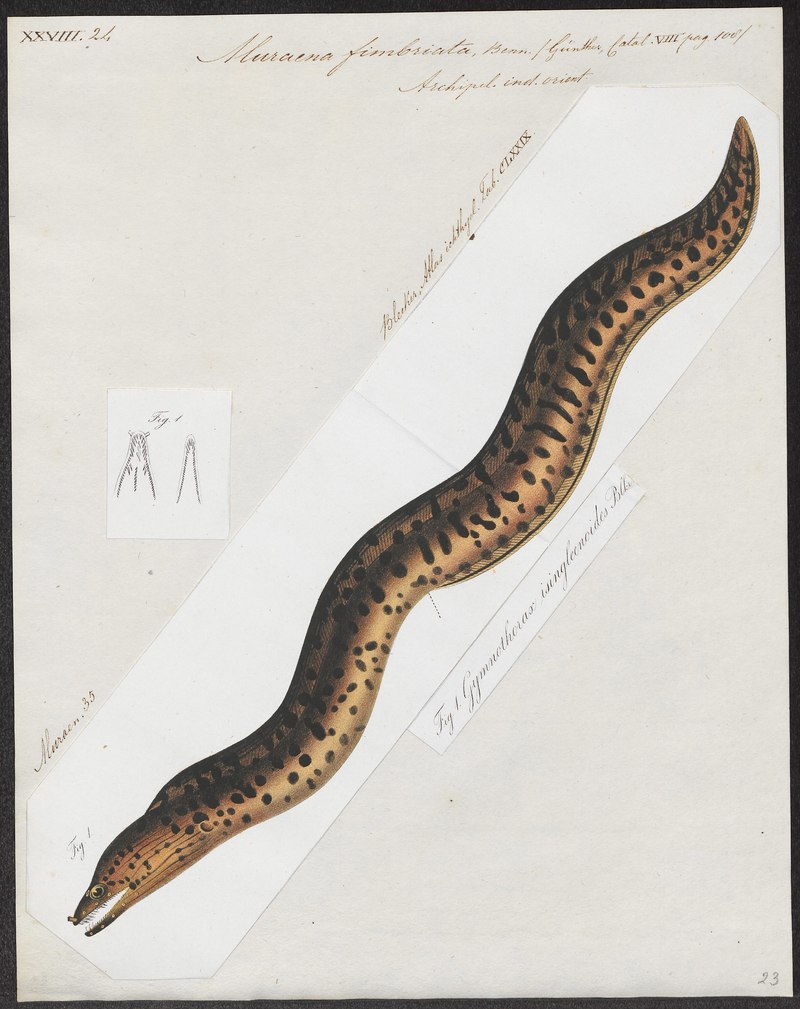 Source: https://commons.wikimedia.org/wiki/File:Muraena_fimbriata_-_1864_-_Print_-_Iconographia_Zoologica_-_Special_Collections_University_of_Amsterdam_-_UBA01_IZ15300051.tif