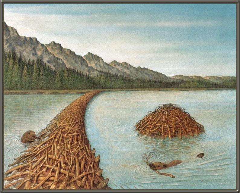 [Animal Art - Kitchen Bert] American Beaver dam (Castor canadensis) {!--캐나다비버-->; DISPLAY FULL IMAGE.