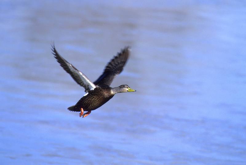 American Black Duck in flight (Anas rubripes) {!--미국오리-->; DISPLAY FULL IMAGE.